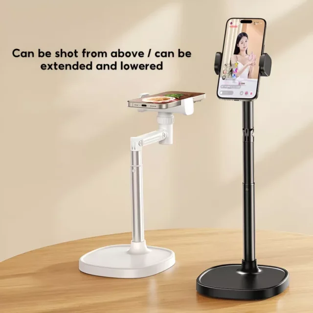 This adjustable phone stand is ideal for anyone who requires a reliable, hands-free solution for creating high-quality content. Whether you’re a live streamer, YouTuber, social media influencer, or simply looking for a more comfortable setup for video calls, this stand offers the flexibility and stability you need. Its adjustable features make it perfect for cooking shows, product reviews, gaming streams, and online classes, allowing you to position your device just the way you want it.