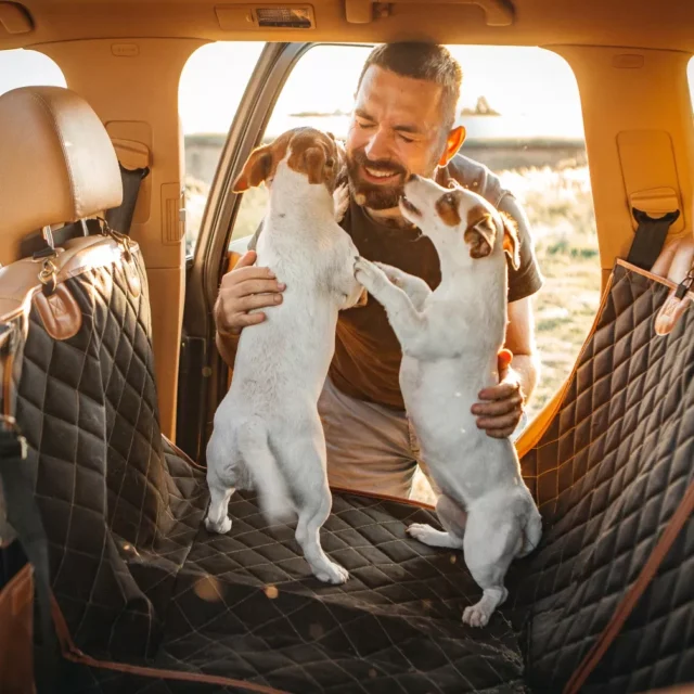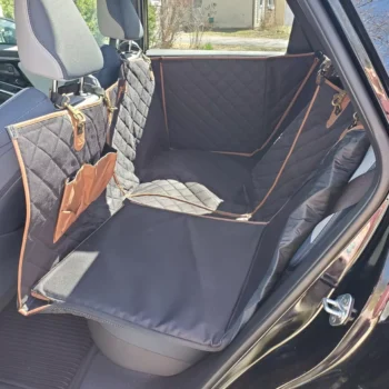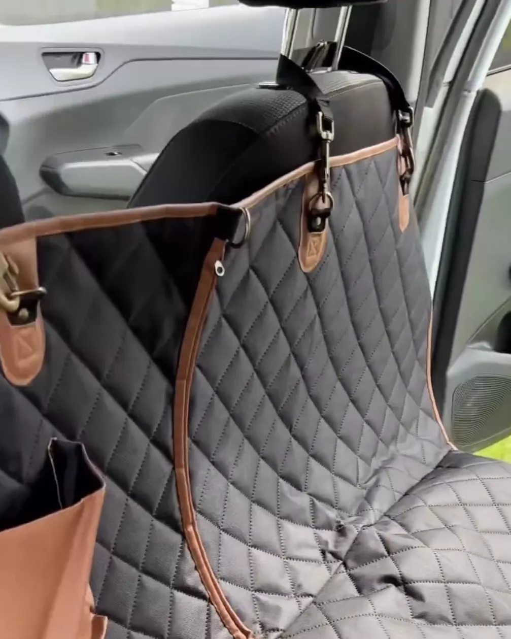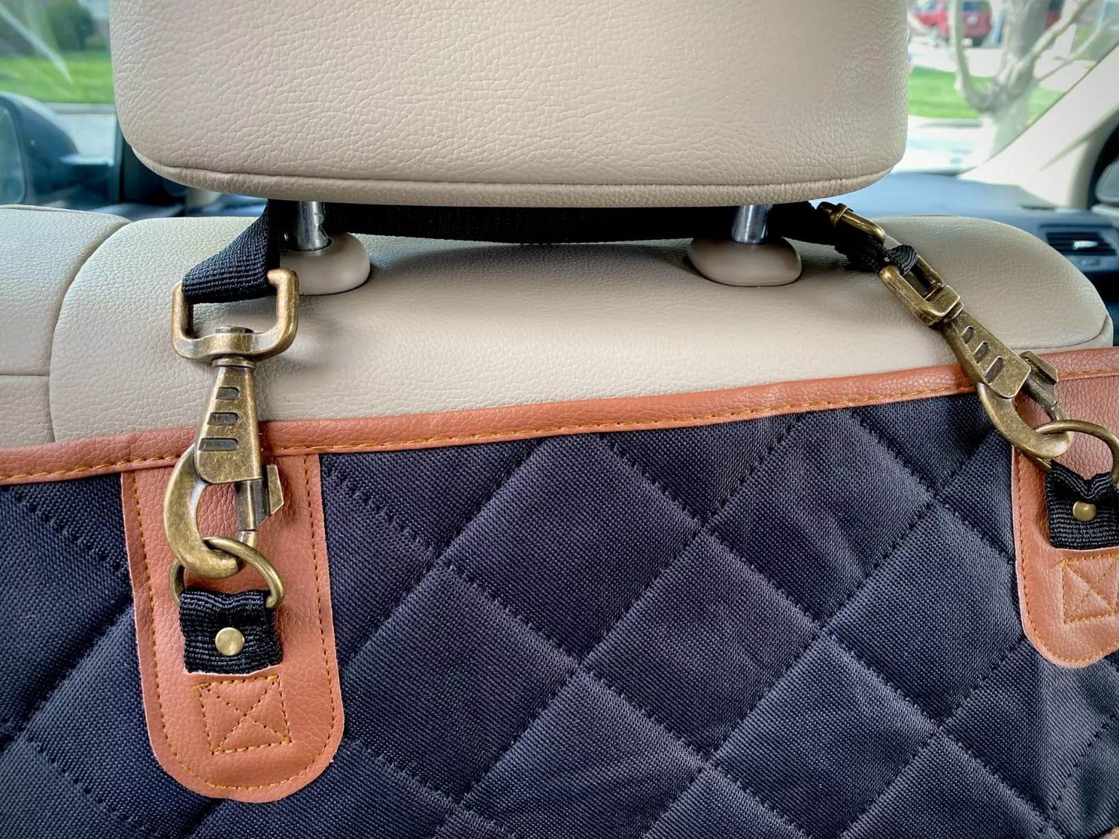This car dog hammock fits most vehicles with detachable headrests. It also features a unique split design – just undo the zipper in the middle to save space and use this dog hammock on one side of the seat. And when not in use, you can easily fold it up and carry conveniently by the handle. Perfect for travel lovers!