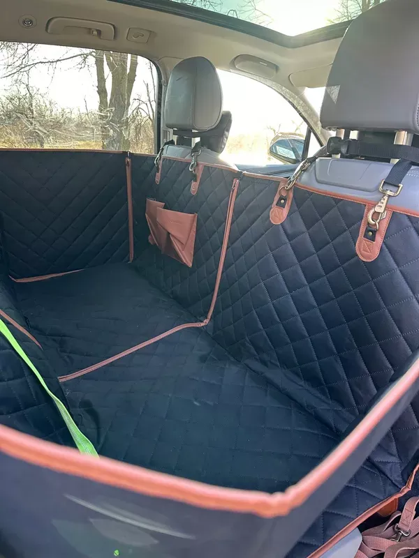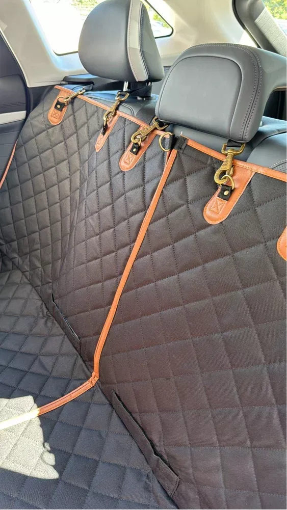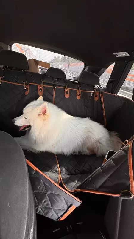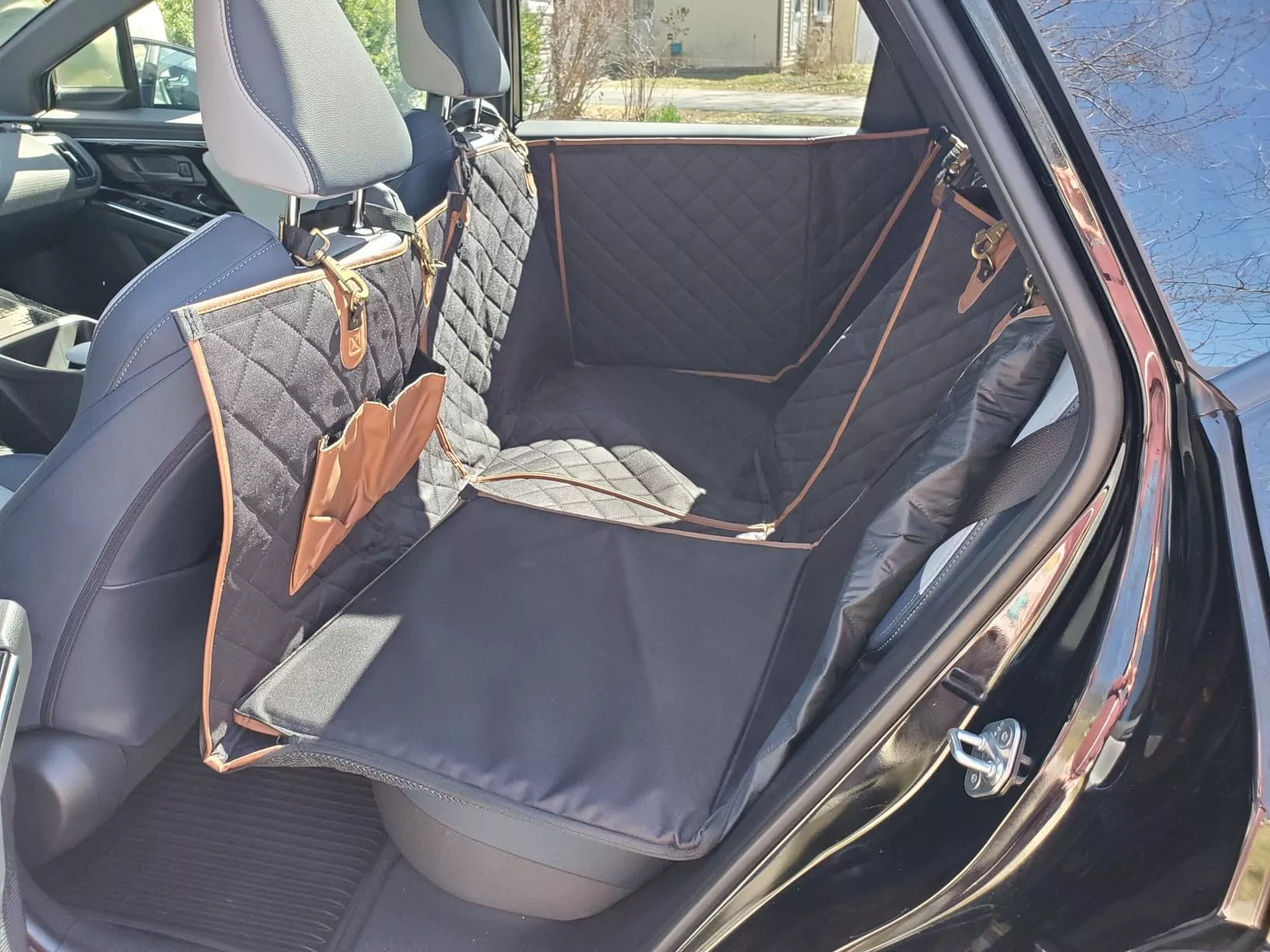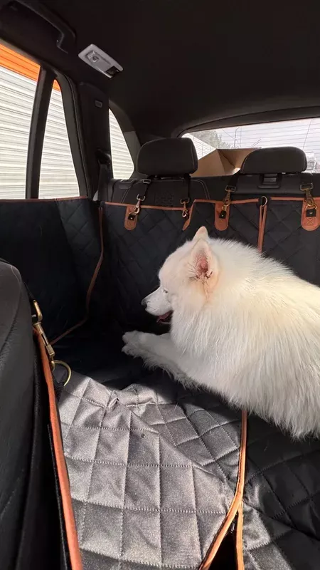 Metal buckles and zippers, nylon straps, seat anchors, and a non-slip bottom layer keep this dog seat cover firmly in place when on the road. Plus, installation is simple and takes just a couple of minutes.
