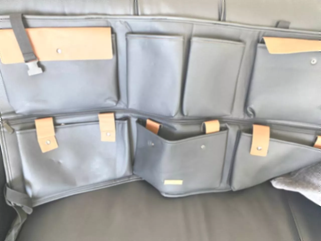 Metal buttons, strong PVC buckles, and solid textile headrest straps securely hold our SUV car trunk organizer and its pockets, ensuring a snug and safe organization that stays in place on the go.