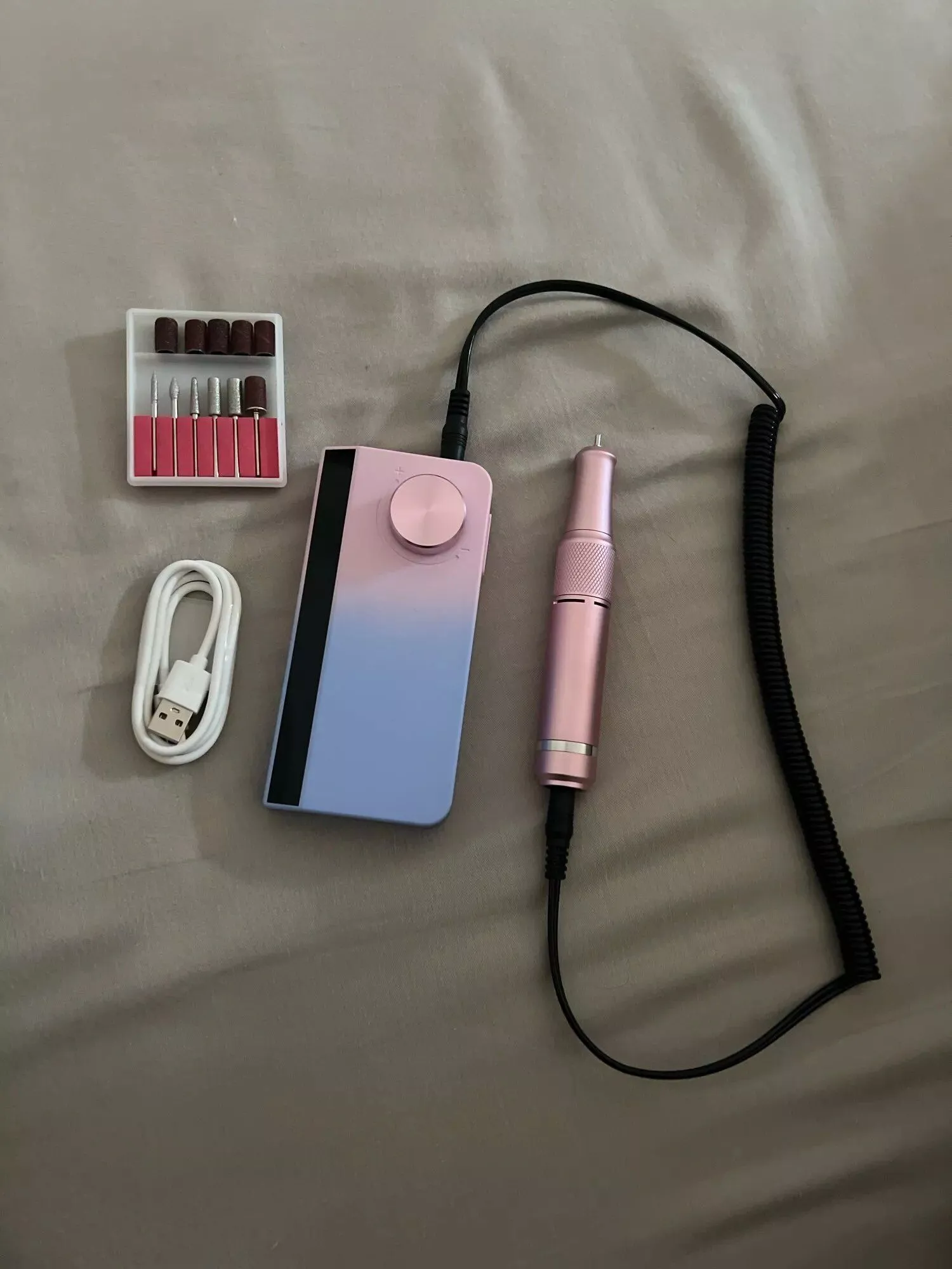 i recently purchased this rechargeable nail drill manicure machine and it has exceeded my expectations. the drill is powerful yet gentle on my nails, making it perfect for both beginners and professionals. the rechargeable feature is incredibly convenient, eliminating the hassle of cords and providing great portability. the battery life is impressive – it lasts through multiple manicure sessions before needing a recharge. the drill comes with a variety of attachments that are all high-quality and versatile, making it easy to shape, smooth, and buff my nails. the multiple speed settings allow for precise control, ensuring a professional-looking finish every time. the drill is also very quiet and doesn’t heat up, which makes it comfortable to use for extended periods. i’ve saved so much time and money doing my nails at home with this machine. it’s a fantastic investment for anyone who loves having beautifully manicured nails. highly recommend this product.