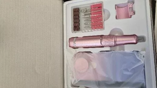 This rechargeable nail drill machine is amazing. it’s very easy to use and perfect for at-home manicures. the drill is powerful and has multiple speed settings for precise control. the rechargeable battery lasts a long time and makes the drill very portable. the attachments are great and cover all my nail needs. the drill is quiet and doesn’t get hot, even with prolonged use. my nails look professionally done every time. it’s a fantastic tool that saves me time and money. i’m very happy with this purchase and highly recommend it to anyone who loves doing their nails. it’s a great investment for maintaining beautiful nails at home.