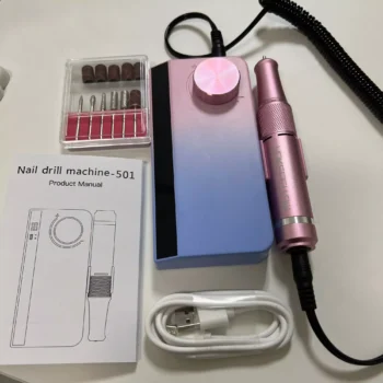 This rechargeable nail drill machine has been a game-changer for my at-home manicures. the drill is lightweight and easy to handle, with intuitive controls and multiple speed settings. the rechargeable battery is a major plus – it lasts a long time and makes the drill very portable and convenient to use anywhere. the attachments are excellent, covering all my nail care needs from shaping to buffing. the drill is powerful enough to handle tough nails yet gentle enough to avoid damaging my natural nails. it’s also very quiet and doesn’t overheat, making it comfortable to use for extended periods. i’ve noticed a significant improvement in the quality of my manicures since i started using this machine. it saves me a lot of time and money compared to regular salon visits. overall, i’m extremely happy with this purchase and highly recommend it to anyone looking for a high-quality nail drill.
