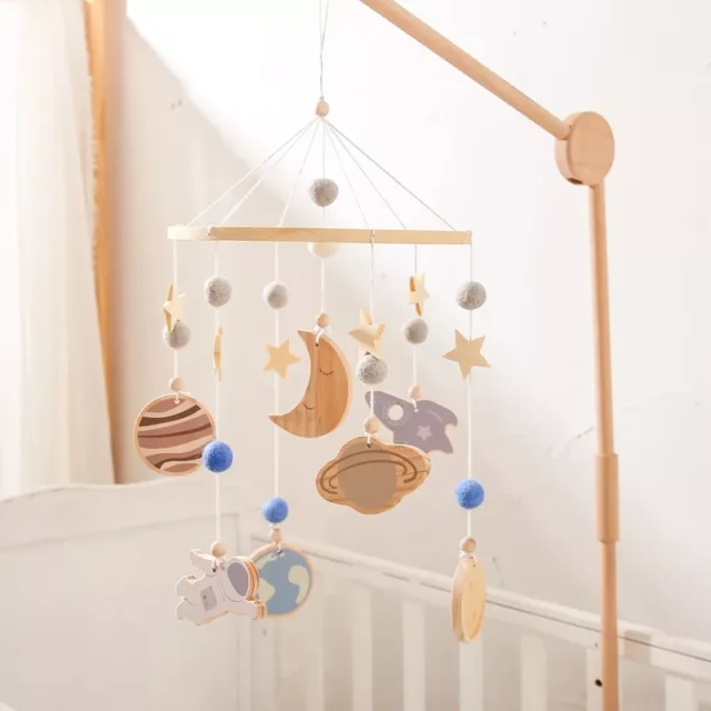 What sets this mobile apart is its unique space theme. From the planets to the animal figures, every detail has been thoughtfully crafted to spark your baby’s imagination and curiosity. As your little one grows, they’ll be fascinated by the colors and shapes, making this mobile not only a practical crib accessory but also a beautiful decor piece for the nursery.