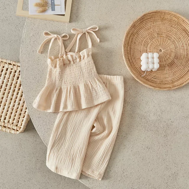 The Toddler Girls Summer Outfit combines simplicity and elegance with a practical design. The sleeveless camisole allows freedom of movement, while the elastic waistband ensures a snug yet comfortable fit. Made with high-quality, breathable fabric, this set is perfect for keeping your little one cool and happy during sunny days.