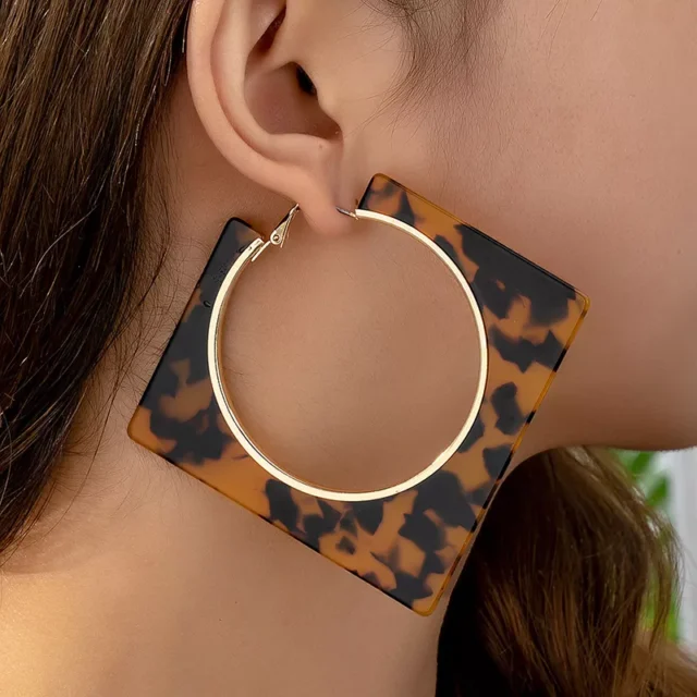 Make a statement with these trendy black square leopard print earrings that bring a bold and fashionable twist to any outfit. Designed for the modern woman who loves to stand out, these oversized hoop earrings combine edgy style with playful geometry. Featuring an eye-catching acrylic design and a striking leopard print pattern, they’re the perfect accessory to elevate both casual and evening wear.