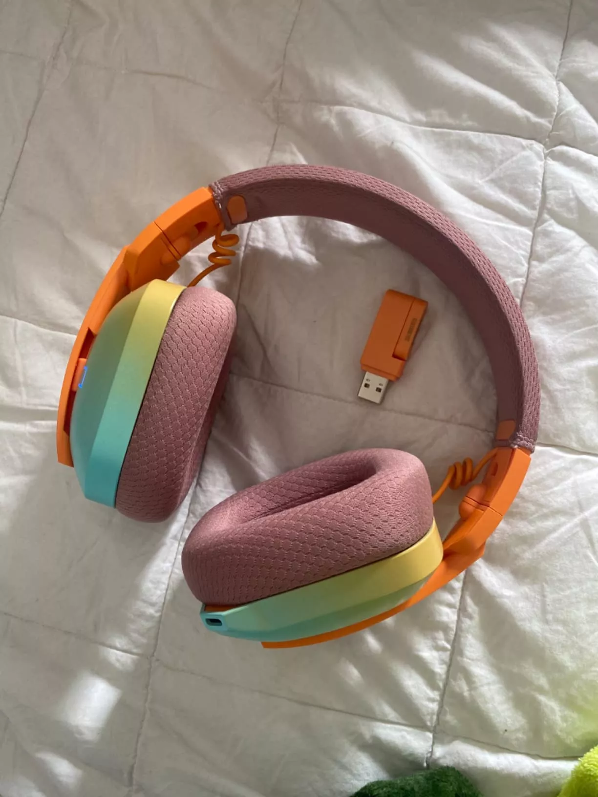 This colorful headset not only looks great but also delivers excellent sound quality and comfort. Its easy Bluetooth pairing with various devices and clear call quality make it perfect for gaming, music, and watching films.